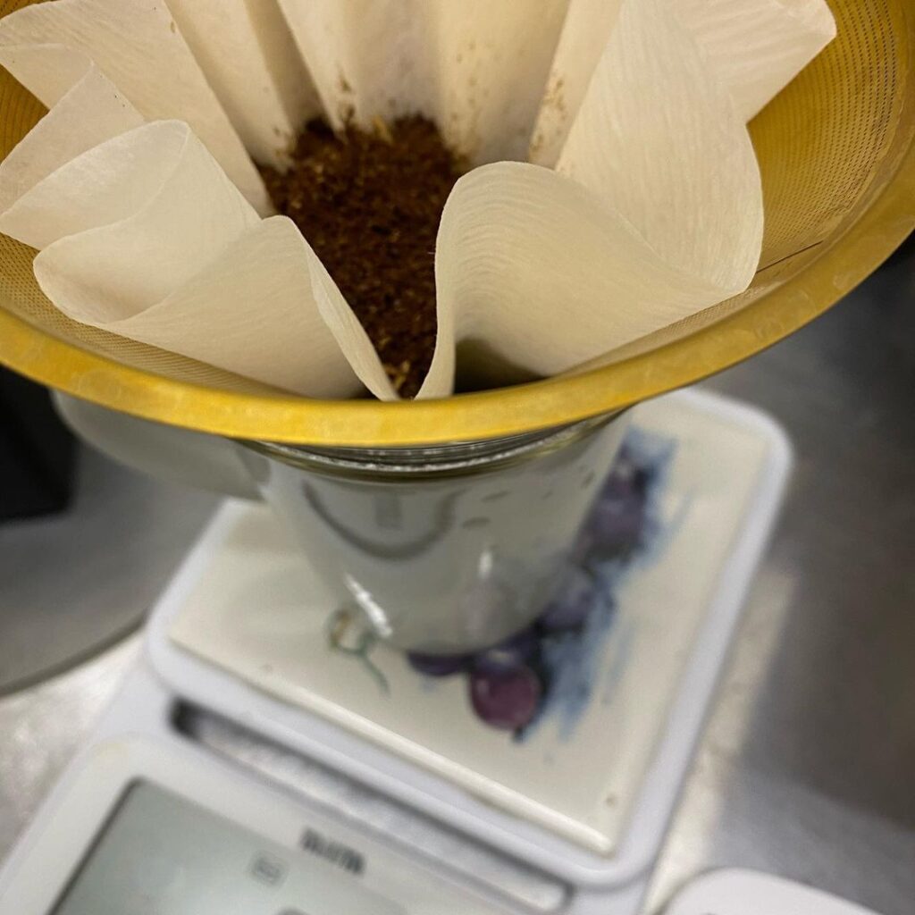 経験上、濾紙は外面から抜け落ちて出てくる成分も多く、これらが味に影響を与える場合もあるのではないか。いつか濾過後に湧出してくる濾紙成分をクロマトで調べてみたい。